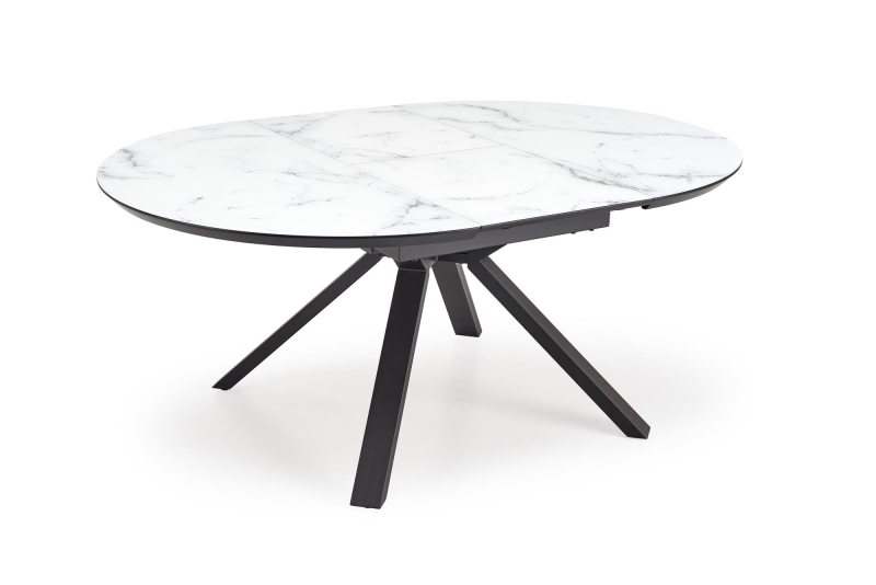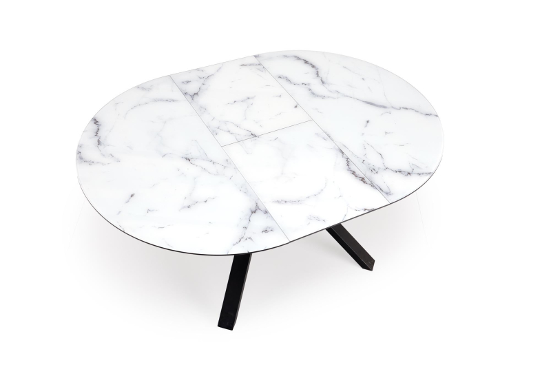 | Odkryj wyjątkowe połączenie nowoczesnego designu i funkcjonalności z rozkładanym stołem VERTIGO. Ten efektowny stół o owalnym blacie stanie się centralnym punktem Twojej jadalni, zachwycając elegancją i praktycznością. Stół VERTIGO charakteryzuje się blatem wykonanym z wysokiej jakości szkła z unikatowym wzorem białego marmuru. To wyrafinowane wykończenie dodaje wnętrzu luksusowego charakteru i jest łatwe w utrzymaniu czystości. Jego owalny kształt sprzyja swobodnej komunikacji przy stole. Podstawa stołu składa się z solidnych nóg ze stali malowanej proszkowo w kolorze czarnym, które zapewniają stabilność i trwałość. Dodatkowym elementem konstrukcyjnym jest MDF lakierowany, który harmonijnie łączy całość, podkreślając nowoczesny charakter stołu. Funkcjonalność stołu VERTIGO podkreśla możliwość rozłożenia blatu z 130 cm do 180 cm długości. Dzięki temu z łatwością dostosujesz jego wielkość do liczby gości, tworząc idealną przestrzeń do wspólnych posiłków i spotkań. Szerokość stołu wynosi 130 cm, a wysokość 76 cm, zapewniając komfortowe użytkowanie. Informacje dodatkowe: -