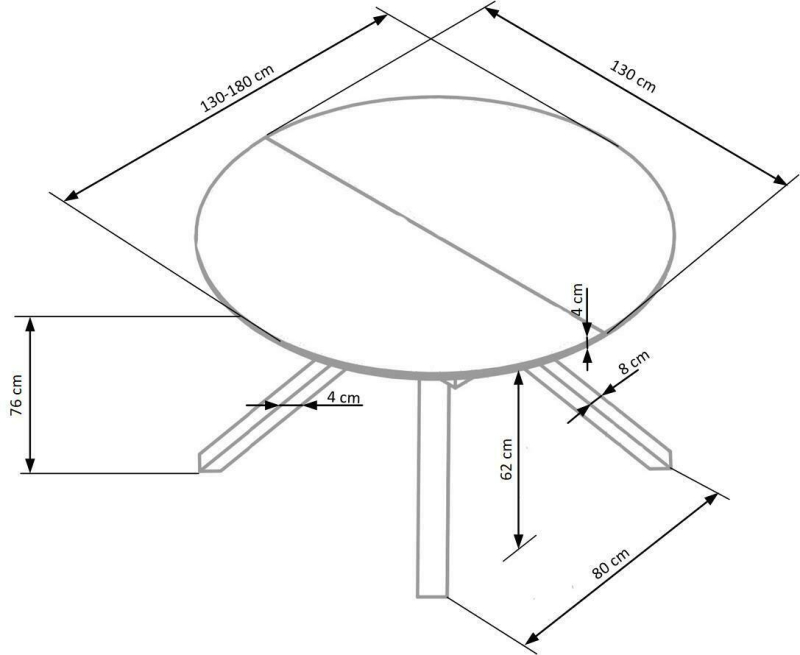 Wymiary: 130-180/130/76 cm (długość przed/po rozłożeniu / szerokość / wysokość) (wymiary podane z dokładnością +/- 1-2%) -