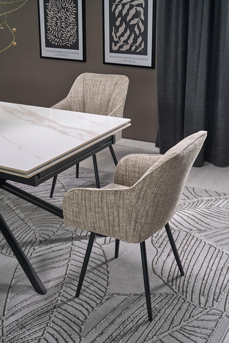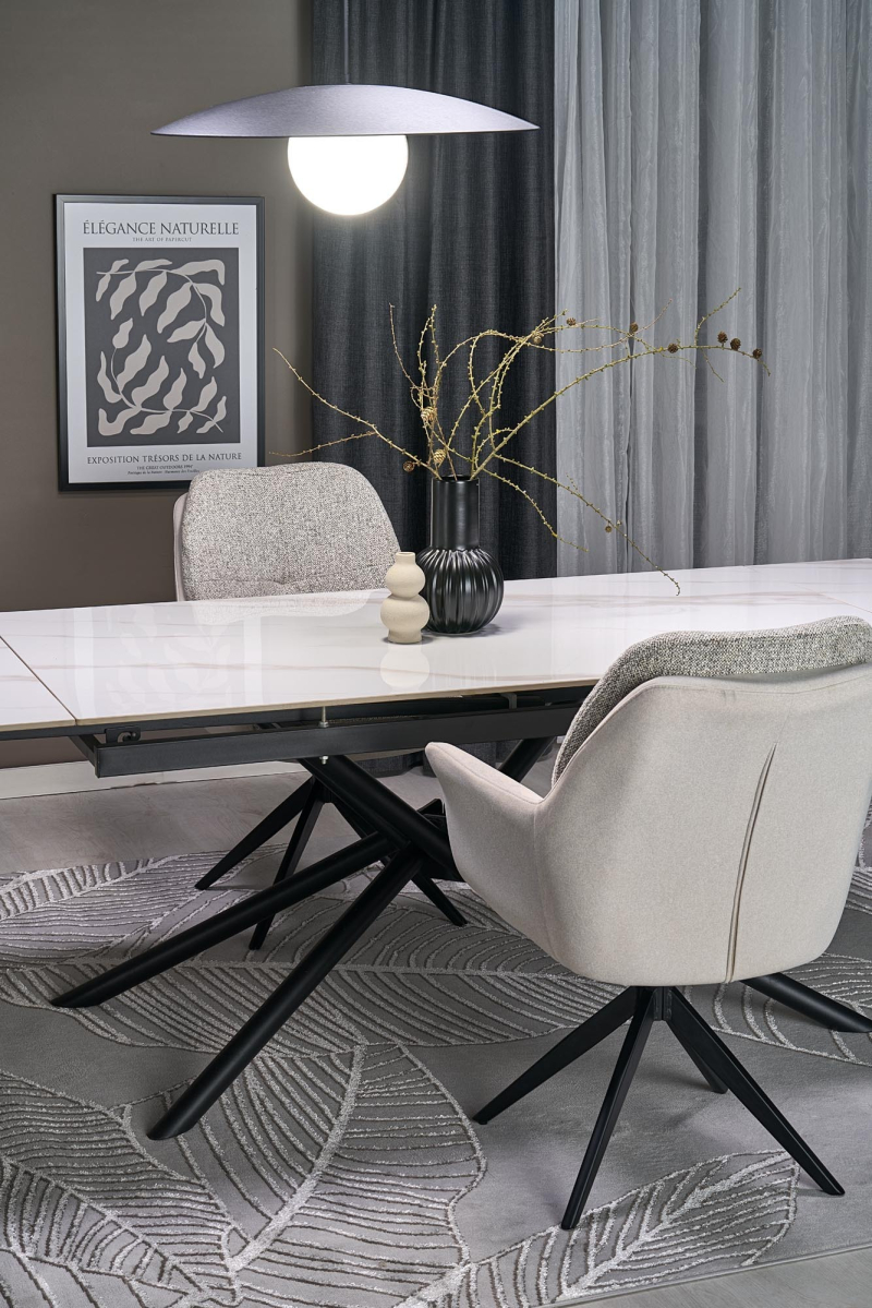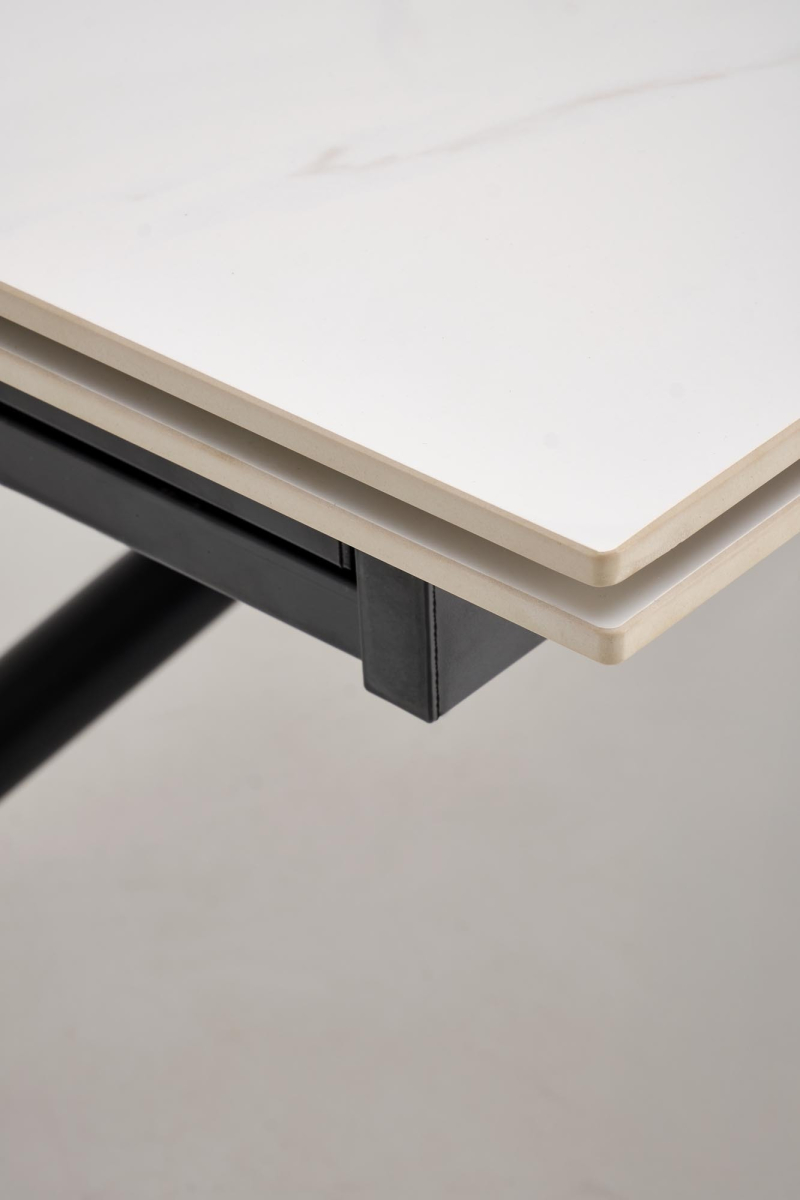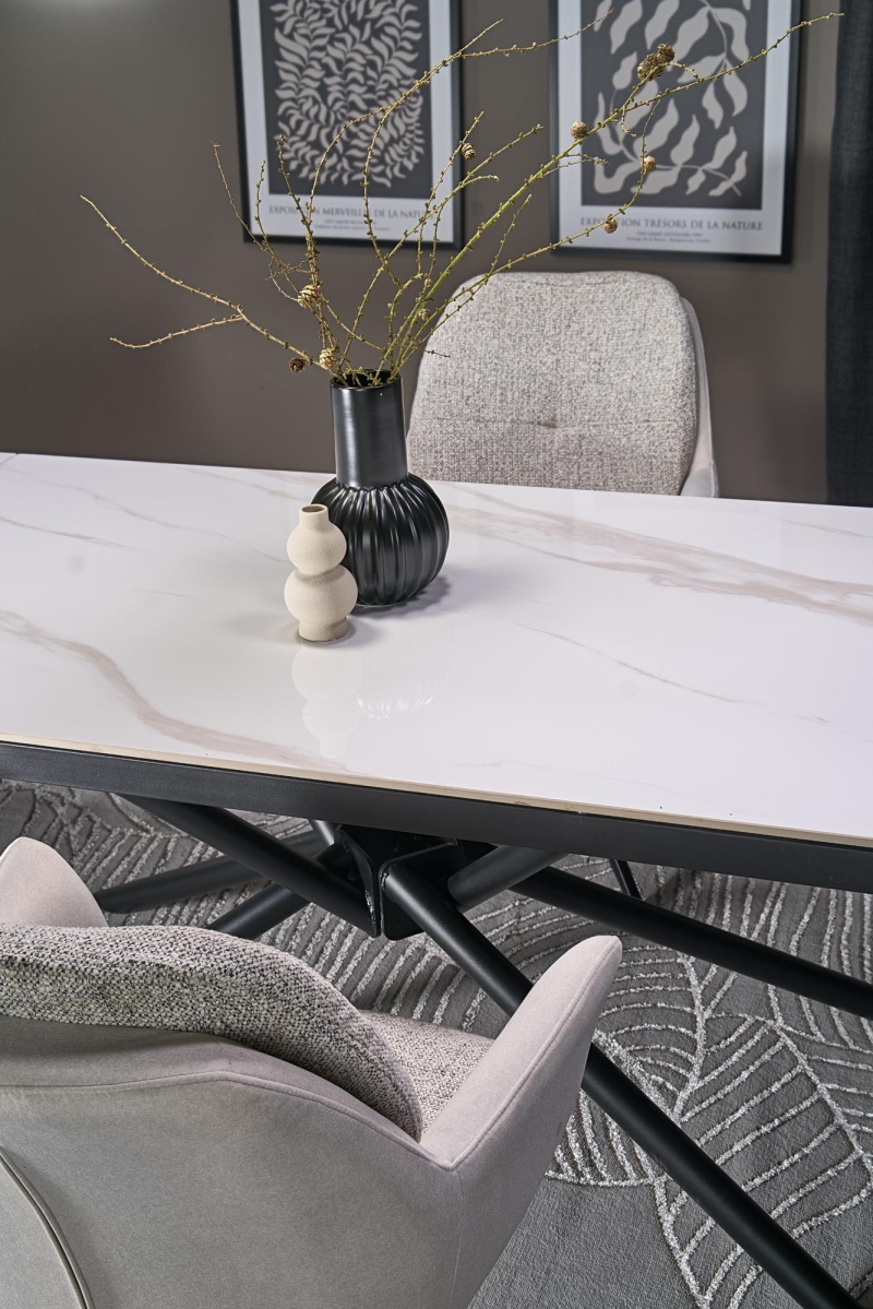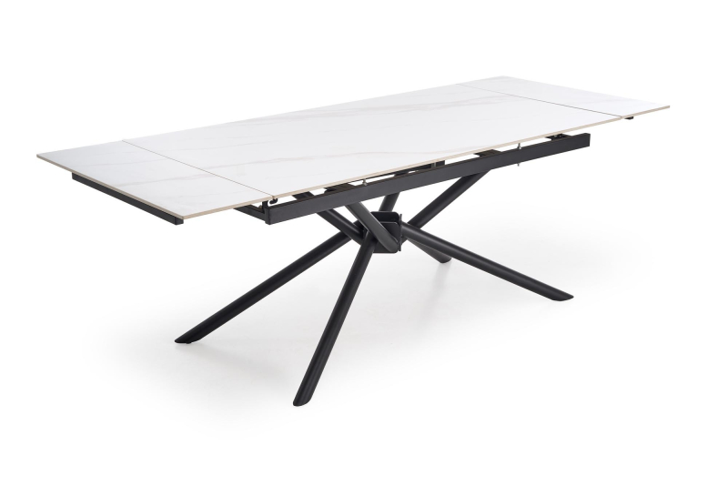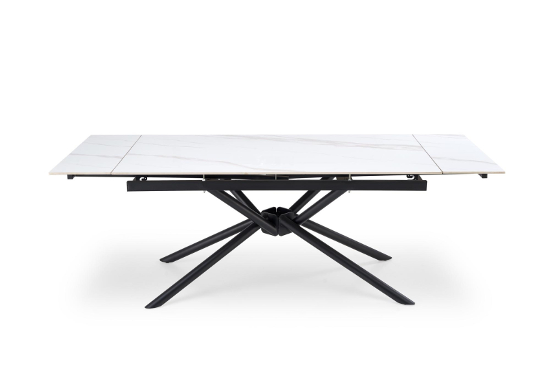 | Odkryj połączenie nowoczesnej elegancji i funkcjonalności z rozkładanym stołem VITORINO. Ten stylowy stół z blatem imitującym biały marmur stanie się wyjątkowym elementem Twojej jadalni lub salonu, idealnym zarówno na co dzień, jak i podczas specjalnych okazji. Stół VITORINO charakteryzuje się blatem wykonanym z trwałego spieku z wyrafinowanym wzorem białego marmuru. Ten materiał nie tylko zachwyca swoim wyglądem, ale również jest odporny na zarysowania, wysoką temperaturę i łatwy w utrzymaniu czystości. Jego prostokątny kształt zapewnia komfortowe użytkowanie. Solidna podstawa stołu składa się z efektownych nóg wykonanych ze stali malowanej proszkowo w eleganckim czarnym kolorze. Ich unikalna, geometryczna konstrukcja dodaje stołowi nowoczesnego charakteru i zapewnia stabilność. Funkcjonalność stołu VITORINO podkreśla możliwość rozłożenia blatu z 160 cm do 220 cm długości. Szerokość stołu wynosi 90 cm, a wysokość 75 cm, z kolei wysokość do blatu to 125 cm. Dzięki tej elastyczności z łatwością dostosujesz jego wielkość do liczby gości. Informacje dodatkowe: -