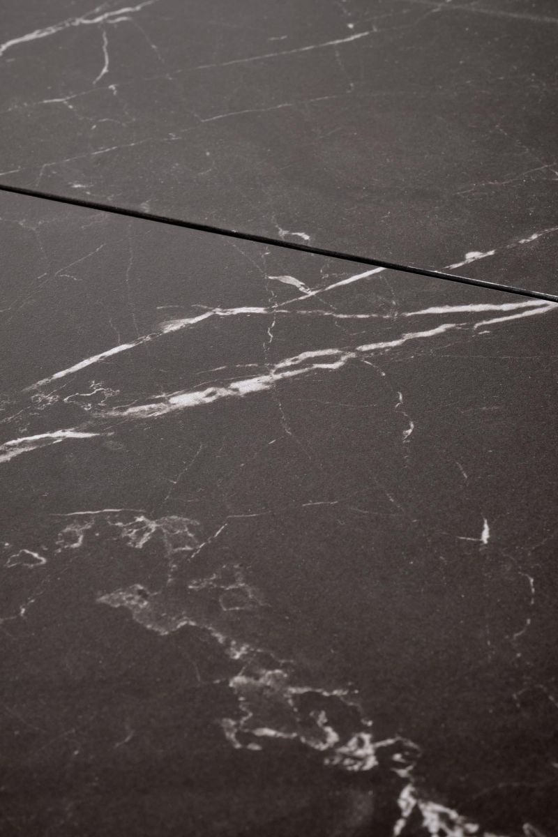 - Luksusowy Blat ze Spieku: Imponujący blat wykonany ze spieku imitującego czarny marmur zachwyca swoim eleganckim wyglądem. Co więcej, spiek jest niezwykle praktyczny – odporny na zarysowania, wilgoć i wysokie temperatury, gwarantując trwałość na lata.