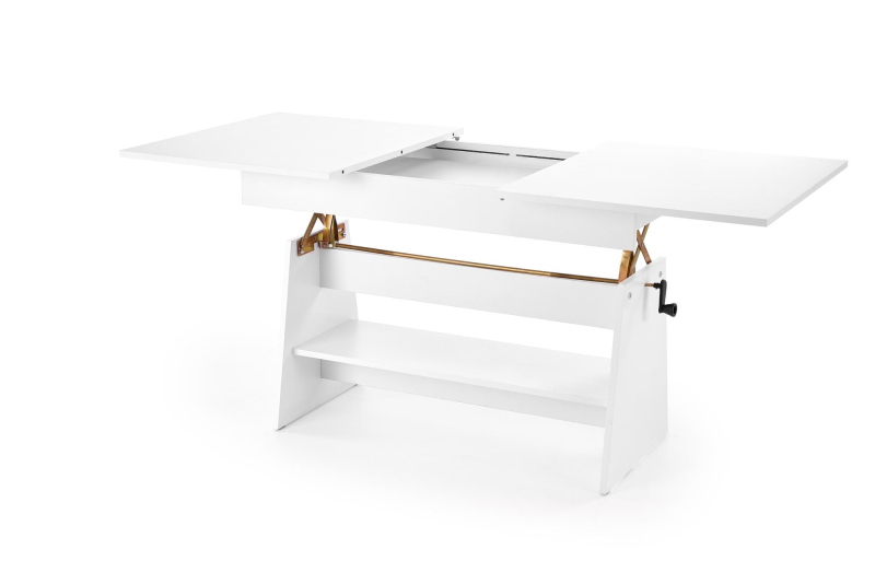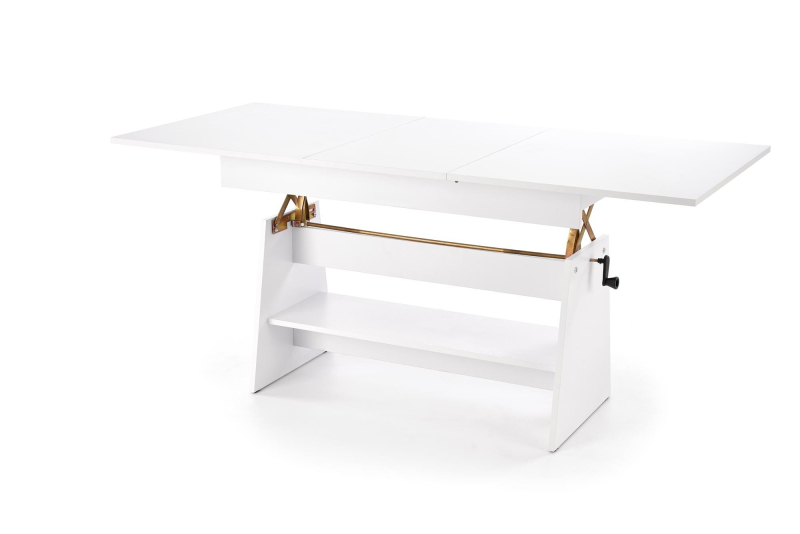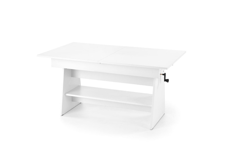 Ławostół Rozkładany ERIKA z Regulacją Wysokości na Korbkę - Funkcjonalność i Komfort w Twoim Salonie Odkryj wszechstronność ławostołu ERIKA, który idealnie dopasuje się do Twoich potrzeb. Ten praktyczny mebel łączy w sobie funkcję stolika kawowego i stołu jadalnego, oferując elastyczne rozwiązanie do każdego salonu. Dzięki funkcji rozkładania, blat ławostołu można łatwo powiększyć z 120 cm do 160 cm, zapewniając wygodne miejsce dla większej liczby gości podczas spotkań czy uroczystości. Dodatkowo, wysokość blatu można płynnie regulować w zakresie od 61 cm do 72 cm za pomocą wygodnej korbki. To intuicyjne rozwiązanie pozwala bez wysiłku dostosować wysokość stołu do różnych okazji – od relaksu przy kawie po komfortowy posiłek. Ławostół ERIKA wykonany jest z trwałej płyty meblowej laminowanej, co gwarantuje jego stabilność i łatwość w utrzymaniu czystości. Jego uniwersalny design sprawia, że doskonale komponuje się z różnymi stylami wnętrz. Produkt przeznaczony jest do samodzielnego montażu. W zestawie znajduje się czytelna instrukcja, która krok po kroku poprowadzi Cię przez proces składania. Cechy produktu: -