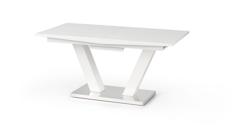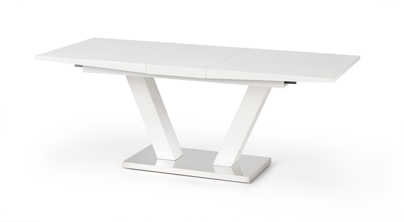 | Odkryj stół rozkładany VISION, który łączy w sobie nowoczesny design i funkcjonalność. Jego minimalistyczna forma oraz elegancka białość sprawią, że stanie się on centralnym punktem Twojej jadalni, idealnym do rodzinnych spotkań oraz przyjęć. Dzięki możliwości rozkładania, stół ten z łatwością dostosujesz do liczby gości, zwiększając jego długość z 160 cm do 200 cm. Wysokość stołu wynosząca 76 cm zapewnia wygodę podczas posiłków, a szerokość 90 cm daje komfort przestrzeni dla wszystkich uczestników. Wykonany z wysokiej jakości MDF lakierowanego, stół VISION jest nie tylko estetyczny, ale także trwały. Połączenie MDF z stalą nierdzewną atutuje nie tylko nowoczesny wygląd, ale także zapewnia stabilność i odporność na uszkodzenia. Dzięki efektownej podstawie w kształcie litery „V” stół zyskuje na lekkości, a jednocześnie jest niezwykle solidny, co czyni go doskonałym wyborem do każdego wnętrza, od klasycznych po nowoczesne aranżacje. Jego elegancka biel doskonale komponuje się z różnorodnymi kolorami i stylami, co pozwala na łatwe dopasowanie do istniejącego wyposażenia Twojej kuchni lub jadalni. Stół rozkładany VISION charakteryzuje się nie tylko estetyką, ale także praktycznością - jego gładka powierzchnia łatwo się czyści, co czyni go idealnym do codziennego użytku. - Wymiary po rozłożeniu: 200 cm x 90 cm x 76 cm