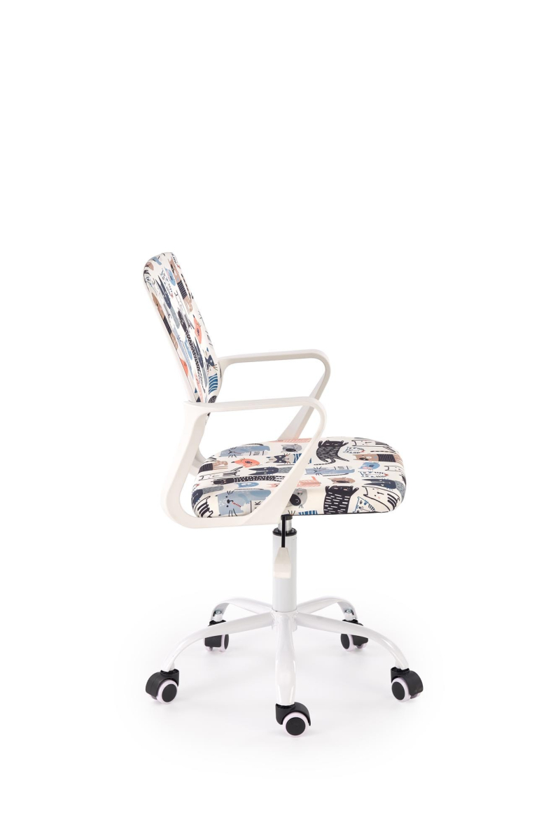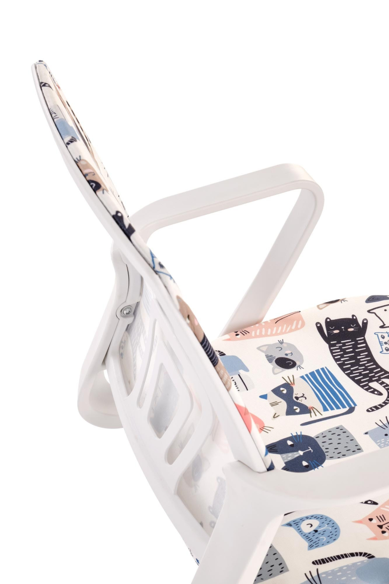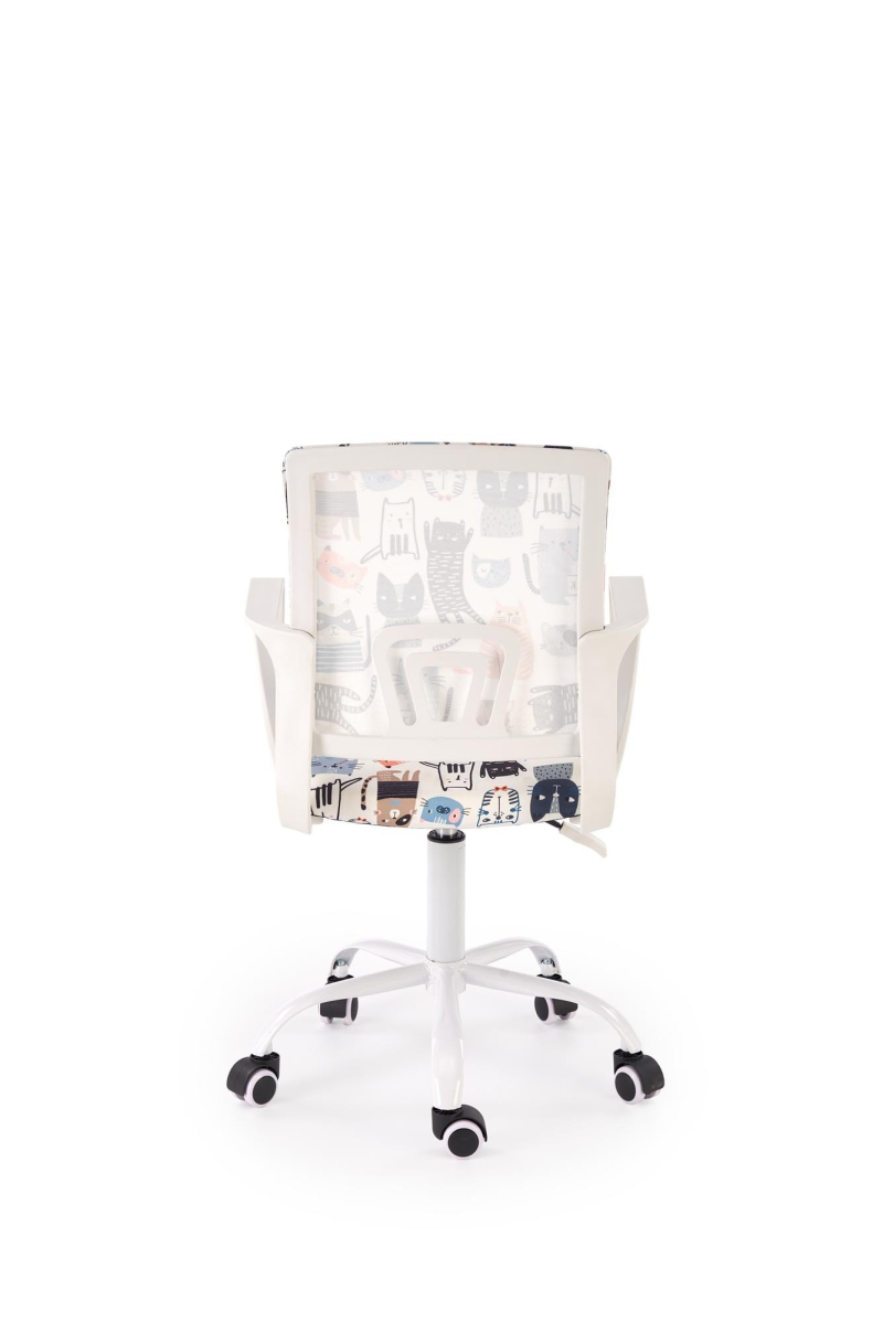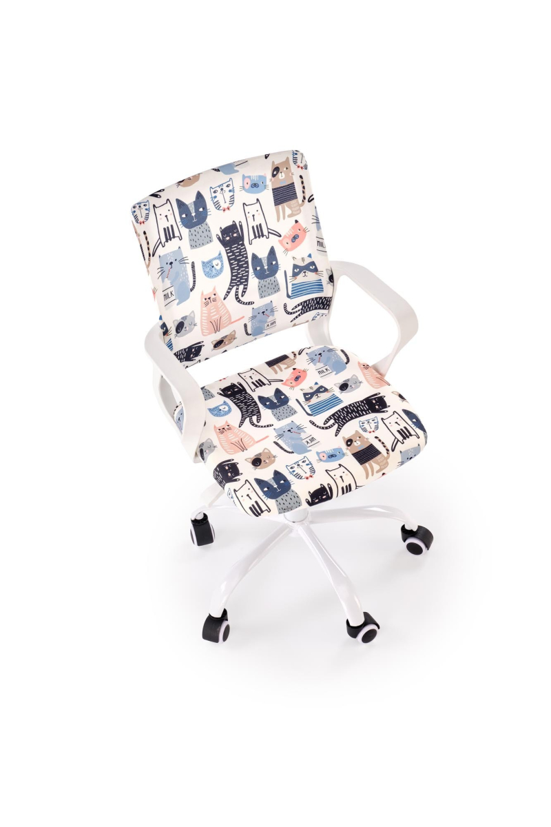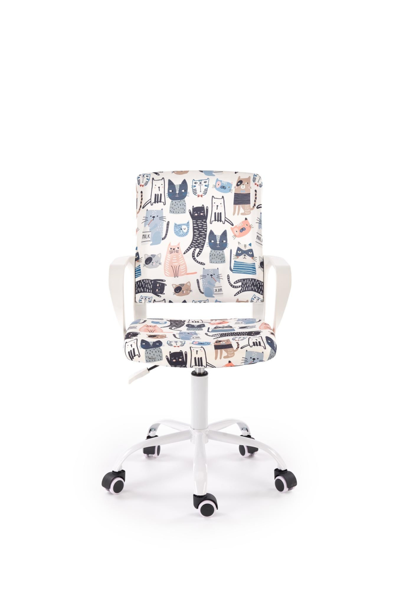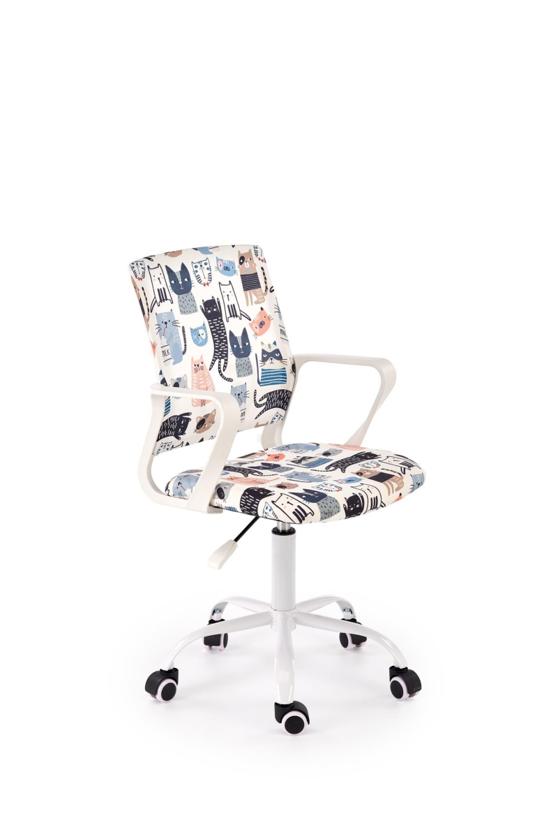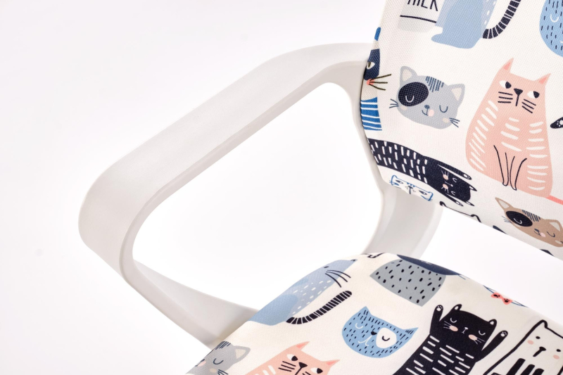 Fotel obrotowy ORIS to doskonałe połączenie stylu i funkcjonalności, idealne do nowoczesnych wnętrz. Jego wielokolorowy materiał obiciowy, wyposażony w wzory przedstawiające urocze koty, nadaje mu wyjątkowego charakteru, co sprawia, że pasuje zarówno do biura, jak i do domowego kącika pracy. Dzięki zastosowaniu tkaniny, fotel jest nie tylko estetyczny, ale również komfortowy, co zapewnia wygodną sesję pracy lub relaksu.
