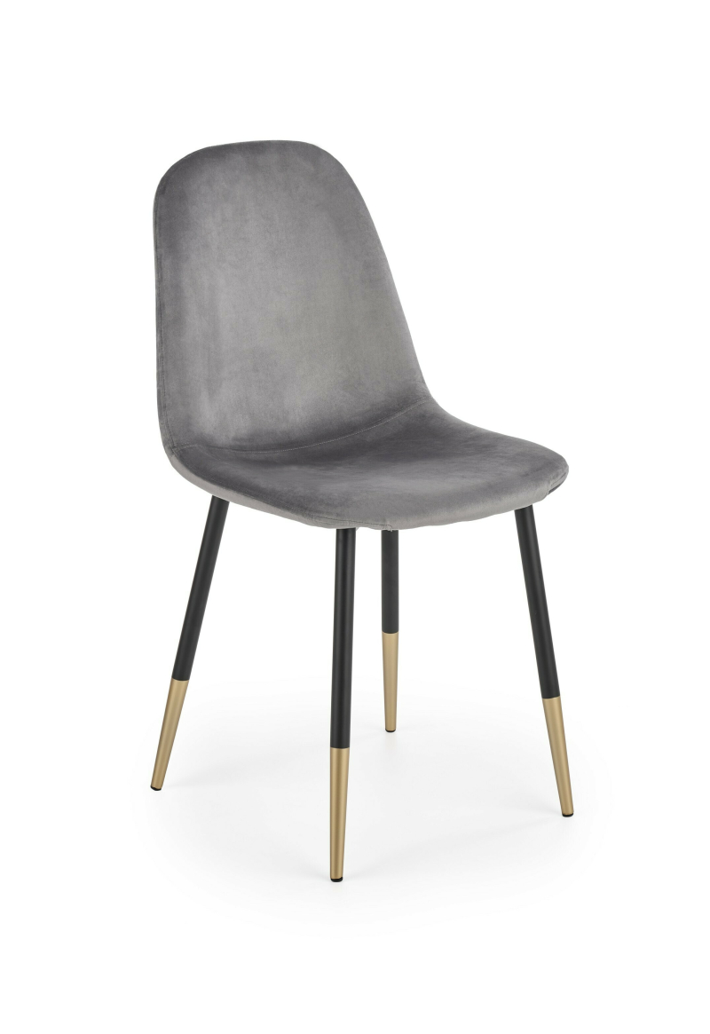 Tapicerka wykonana z miękkiej tkaniny w odcieniu popielatym HLR 21 jest nie tylko przyjemna w dotyku, ale także łatwa w utrzymaniu czystości. W połączeniu z stalową konstrukcją malowaną proszkowo oraz chromowanymi detalami, krzesło prezentuje się niezwykle stylowo. Nogi w eleganckim złotym odcieniu dodają mu charakteru, a jednocześnie zapewniają stabilność i wsparcie.