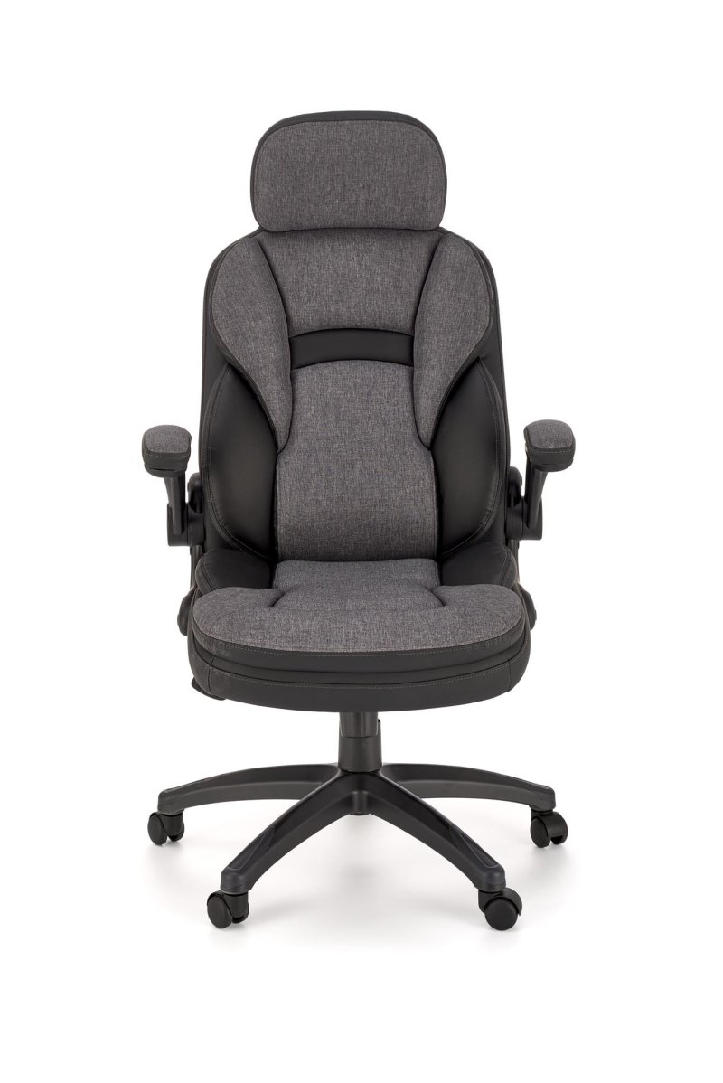 wymiary: 67/69/120-128/49-57 cm; mechanizm TILT, eco skóra / tkanina, kolor: czarny - popielaty