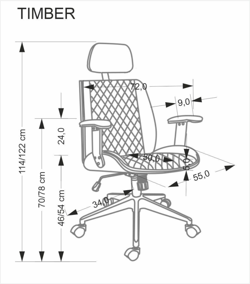 Fotel TIMBER charakteryzuje się mechanicznym systemem TILT, który umożliwia regulację wysokości oraz swobodne kołysanie się. Dzięki szerokiemu zakresowi regulacji wysokości od 46 cm do 54 cm, fotel dostosuje się do indywidualnych potrzeb użytkownika, co sprawia, że praca staje się znacznie bardziej wygodna. Dodatkowe podłokietniki zwiększają komfort, wspierając ramiona i zapewniając ergonomiczną postawę w trakcie pracy.