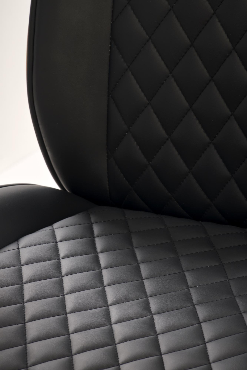 Wysokiej jakości materiały, zastosowanie ergonomicznego kształtu oraz miękka, pikowana tapicerka wpływają na komfort użytkowania. Fotel wyposażony jest również w podłokietniki, co zwiększa wygodę podczas długotrwałego siedzenia. Błyszcząca, chromowana podstawa z kółkami zapewnia łatwość w przemieszczaniu się, co jest niezastąpione w dynamicznym środowisku biurowym.