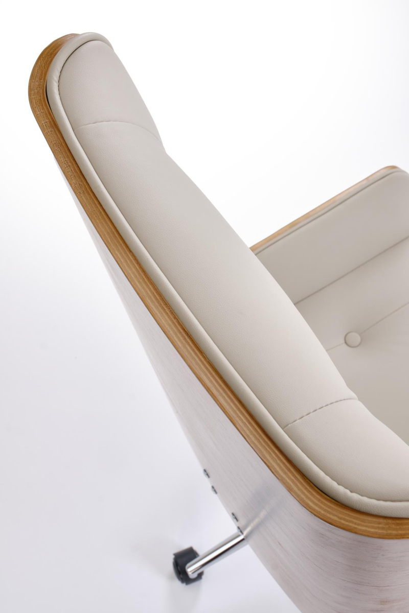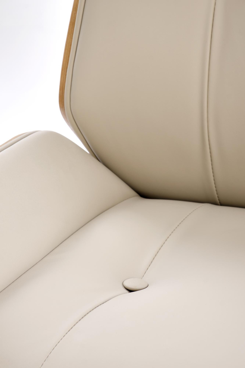 • Eco skóra: Miękka i przyjemna w dotyku eco skóra w beżowym kolorze zapewnia komfort siedzenia oraz jest łatwa w utrzymaniu czystości. Dodatkowe przeszycia i guziki dodają fotelowi wyrafinowanego charakteru.