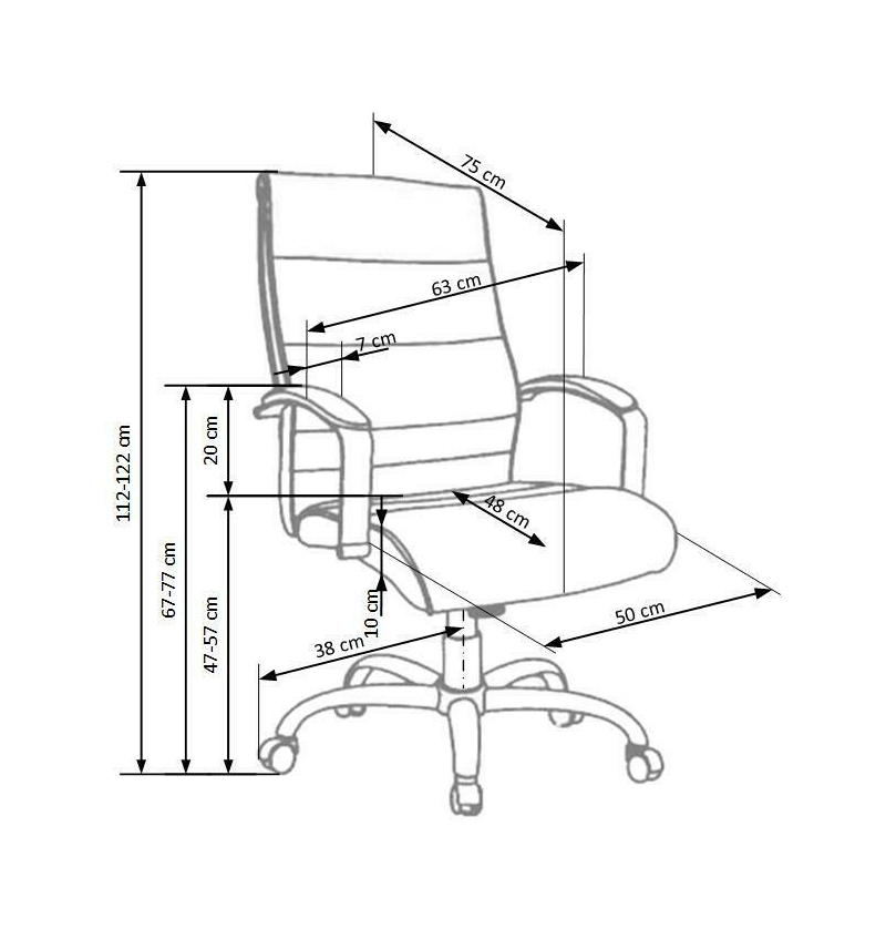 - Wymiary: 63 cm szerokości, 51 cm głębokości, wysokość regulowana od 112 do 122 cm