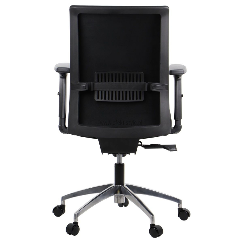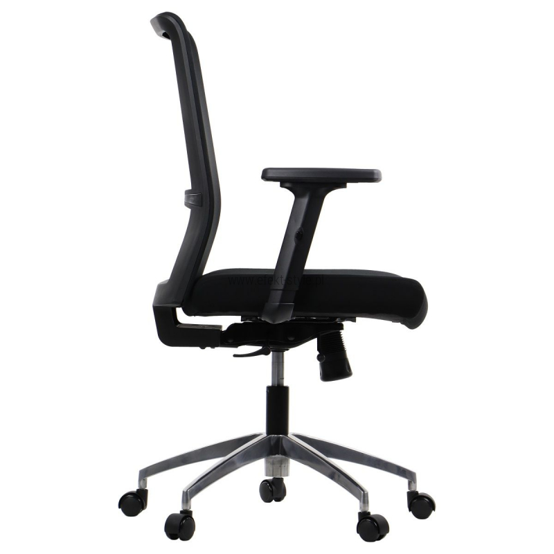 Wyposażony w dużą ilość ergonomicznych funkcji, które gwarantują komfortowe i wygodne użytkowanie. Prezentowane krzesło obrotowe posiada oparcie i siedzisko w kolorze czarnym i aluminiowa podstawę