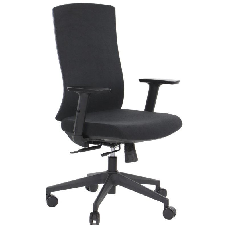 siedzisko i oparcie tapicerowane wytrzymałą tkaniną w kolorze czarnym