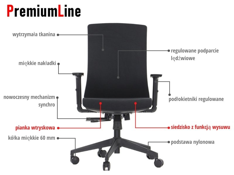 PODSTAWA I PODNOŚNIKstabilna nylonowa podstawa pięcioramienna