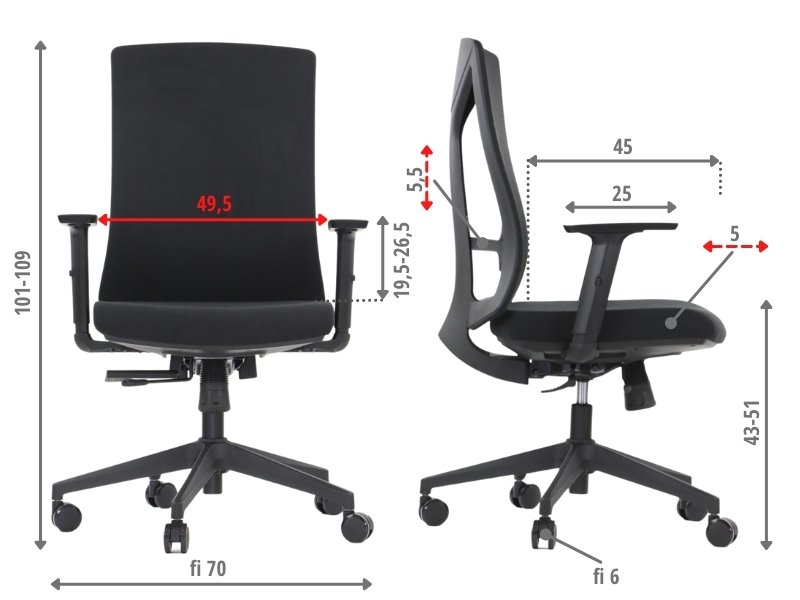 DANE TECHNICZNE fotela:SIEDZISKO I OPARCIEregulacja wysokości