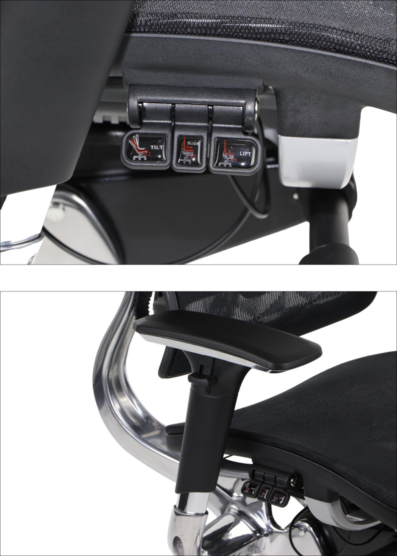 Regulowane podłokietniki 3D to kolejny atut fotela ERGONEW.