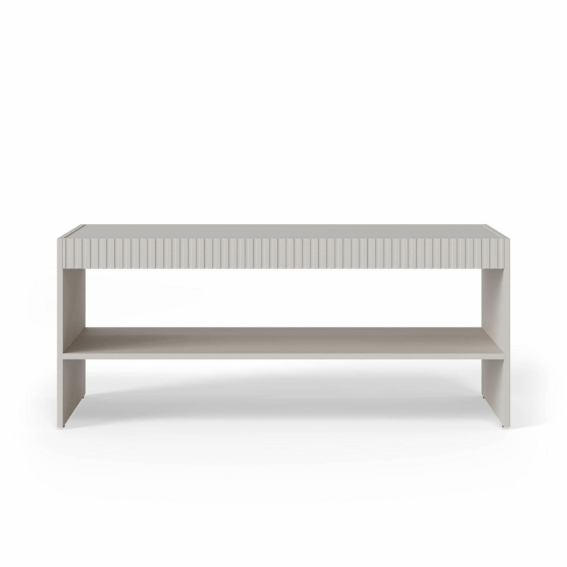 | Stylowa i funkcjonalna Ława PAXOS LAW-1 to doskonały dodatek do Twojego salonu! O wymiarach 120 x 50 x 57 cm (szerokość x głębokość x wysokość), idealnie sprawdzi się jako centralny punkt strefy wypoczynkowej. Wykonana z wysokiej jakości płyty meblowej laminowanej, eleganckiego MDF foliowanego oraz stabilnej stali malowanej proszkowo, ława PAXOS LAW-1 łączy w sobie trwałość i nowoczesny design. Subtelne połączenie koloru kaszmir z czarnymi akcentami nóżek nadaje jej wyrafinowany i uniwersalny charakter, który z łatwością wkomponuje się w różne style wnętrz. Ława posiada praktyczną półkę umieszczoną pod blatem, która zapewnia dodatkową przestrzeń do przechowywania czasopism, pilotów czy innych drobnych przedmiotów, pomagając utrzymać porządek w salonie. Charakterystycznym elementem designu są ryflowane panele boczne, które dodają ławie unikalnego i nowoczesnego wyglądu. Całość wsparta jest na smukłych, czarnych metalowych nóżkach, które podkreślają lekkość konstrukcji i ułatwiają dostęp podczas sprzątania. Parametry produktu: -