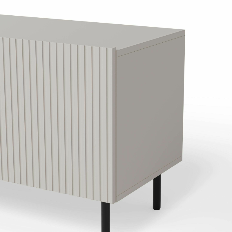 | Elegancka i przestronna Szafka RTV PAXOS RTV-2 to idealne centrum rozrywki dla Twojego salonu. Jej imponujące wymiary 200 x 40 x 54 cm (szerokość x głębokość x wysokość) zapewniają mnóstwo miejsca na sprzęt multimedialny oraz różnorodne przedmioty. Wykonana z wysokiej jakości płyty meblowej laminowanej, eleganckiego MDF foliowanego oraz stabilnej stali malowanej proszkowo, szafka RTV PAXOS RTV-2 łączy w sobie trwałość i nowoczesny design. Wyrafinowane połączenie koloru kaszmir z czarnymi detalami nóżek nadaje jej stylowy i uniwersalny charakter, który doskonale wkomponuje się w nowoczesne aranżacje wnętrz. Szafka RTV oferuje cztery zamykane szafki z wewnętrznymi półkami, zapewniając dużą przestrzeń do przechowywania akcesoriów, płyt, kabli czy innych przedmiotów. Wszystkie cztery fronty szafek są ryflowane, dodając meblowi spójnego, unikalnego i nowoczesnego akcentu. Całość wsparta jest na smukłych, czarnych metalowych nóżkach, które podkreślają lekkość konstrukcji i ułatwiają utrzymanie czystości pod meblem. Parametry produktu: -