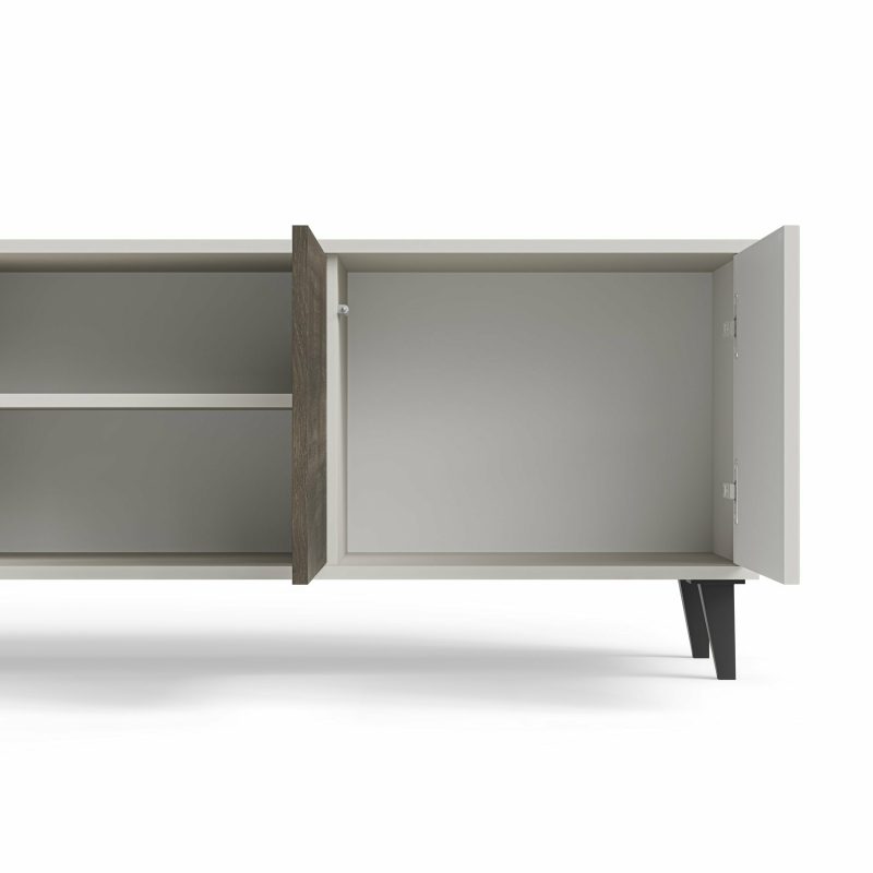 Szafka RTV RANDOM 2 RTV-3 – Imponujące Centrum Rozrywki z Kolekcją RANDOM! Przedstawiamy szafkę RTV RANDOM 2 RTV-3, która łączy w sobie nowoczesny design i jeszcze większą funkcjonalność, idealnie dopasowując się do przestronnych salonów. Jej unikalne połączenie kolorystyczne kaszmiru, orzecha i czerni tworzy elegancki mebel, który stanie się dominującym punktem Twojej strefy rozrywki. Wyjątkowe Połączenie Kolorów i Detali: Szafka RTV RANDOM 2 RTV-3 charakteryzuje się nowoczesnym zestawieniem subtelnego kaszmiru i ciepłego odcienia orzecha, uzupełnionym o eleganckie, czarne nóżki. Jeden z frontów posiada ryflowaną strukturę w kolorze kaszmiru, dodając meblowi unikalnego charakteru i wizualnego zainteresowania. Przestronność i Funkcjonalność: Dzięki imponującym wymiarom 200 cm szerokości, 40 cm głębokości i 52 cm wysokości, szafka RTV oferuje znaczną przestrzeń na duży telewizor oraz rozbudowany sprzęt audio-wideo. Pojemne, zamknięte szafki pomogą ukryć kable i inne akcesoria, utrzymując idealny porządek w Twoim salonie. Dodatkowe półki lub przegrody zapewnią wygodne miejsce na dekoder, konsolę do gier, soundbar czy piloty. Wysoka Jakość Materiałów: Szafka RTV została wykonana z wysokiej jakości materiałów: płyty meblowej okleinowanej oraz MDF okleinowanego, co gwarantuje jej trwałość i estetyczny wygląd na lata. Solidne nóżki z polipropylenu zapewniają stabilność i dodają nowoczesnego akcentu. Stwórz Kompletną Aranżację z Kolekcją RANDOM: Z przyjemnością informujemy, że w naszej ofercie dostępna jest pełna kolekcja mebli RANDOM. Odkryj różnorodność stylowych i funkcjonalnych brył w tej samej, unikalnej palecie kolorystycznej. Dzięki temu z łatwością zaaranżujesz spójne i eleganckie wnętrze w całym swoim domu! Specyfikacja Produktu: -