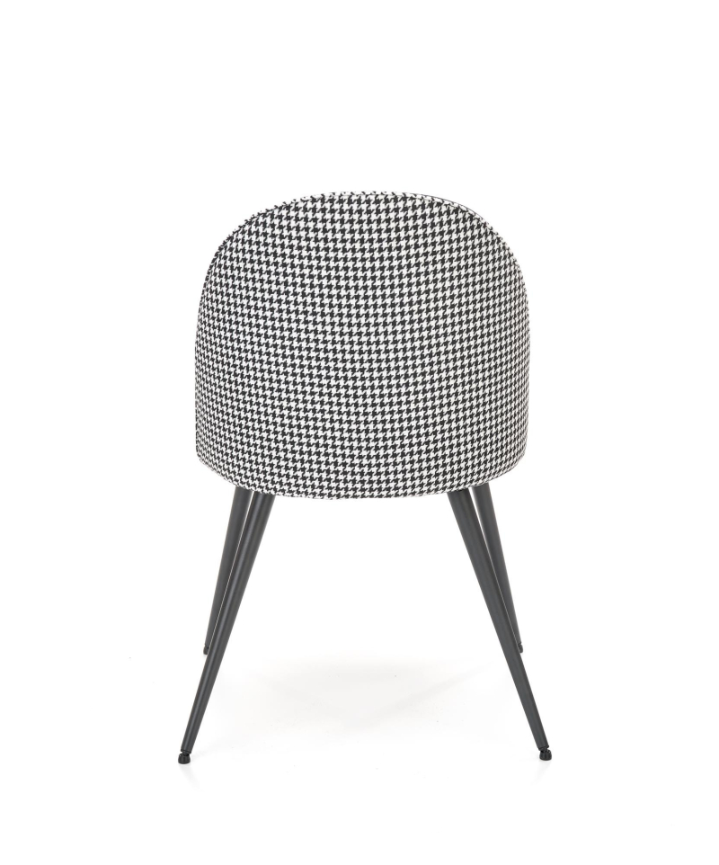 Krzesło K478 wyróżnia się także wygodnym siedziskiem, które zachęca do długotrwałego użytkowania. Jego unikalny wygląd sprawi, że stanie się ozdobą każdej przestrzeni, przyciągając wzrok gości. Dzięki połączeniu czarnego velvetu z białymi detalami, krzesło doskonale nawiązuje do najnowszych trendów w aranżacji wnętrz.