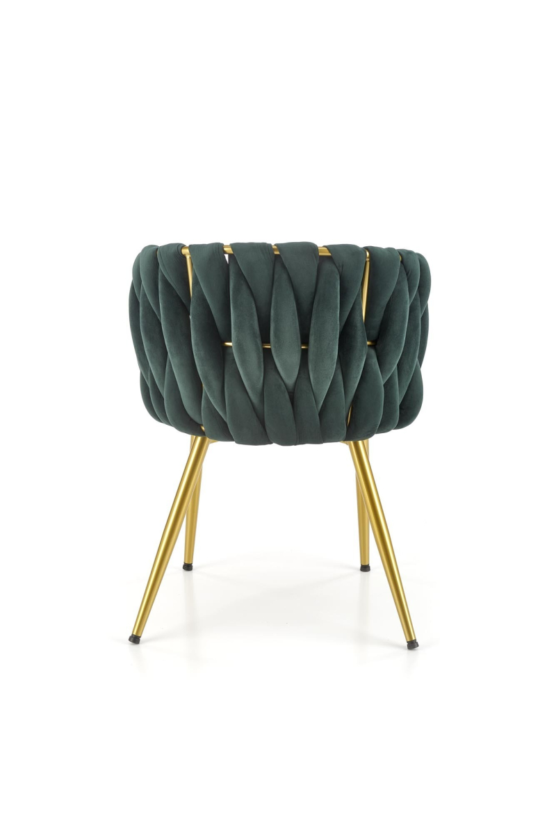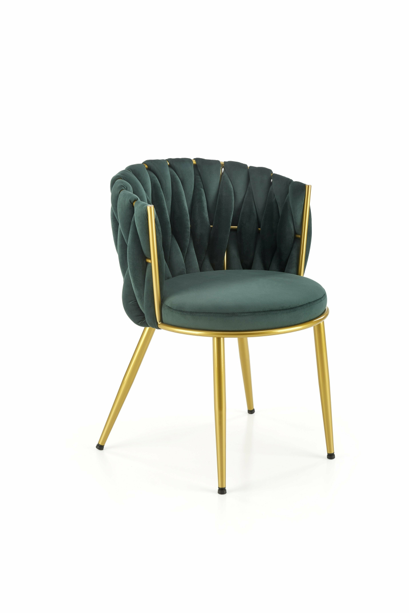 Krzesło K517 to idealne połączenie elegancji i funkcjonalności, które stanie się ozdobą każdego wnętrza. Jego nowoczesny design ewokuje luksus oraz wygodę, a ciemnozielony kolor w połączeniu ze złotymi akcentami nadaje mu wyjątkowego charakteru. Dzięki starannemu wykonaniu z wysokiej jakości materiałów, krzesło zapewnia nie tylko estetykę, ale i trwałość na długie lata.