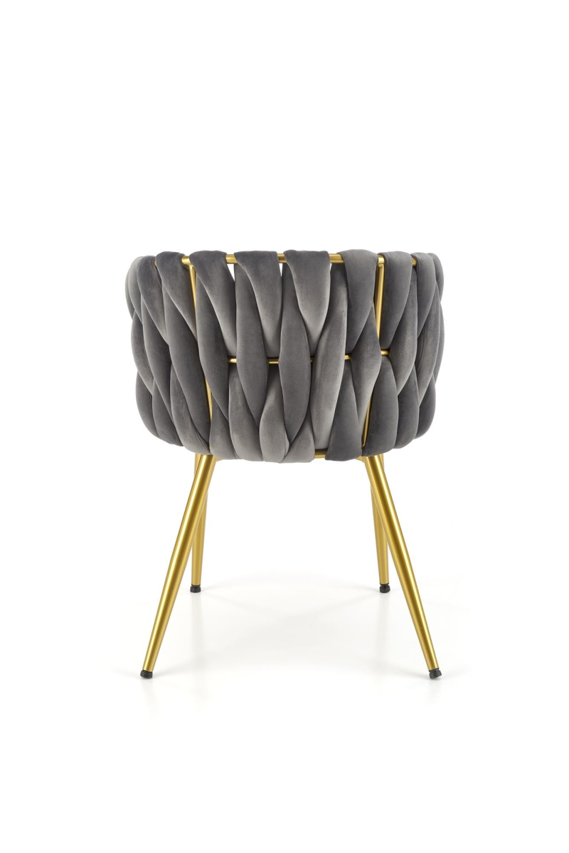 Krzesło K517 w eleganckim odcieniu popielatym to idealny wybór dla osób pragnących dodać do wnętrza nutkę nowoczesności i wyrafinowania. Wykonane z wysokiej jakości tkaniny velvet, sprawia, że jest nie tylko piękne, ale i przyjemne w dotyku. Jego stylistyka łączy wyrafinowane detale z wygodą, co czyni je doskonałym dodatkiem do każdego stylowego wnętrza.