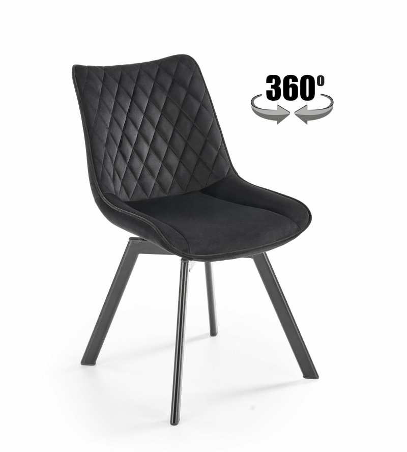 Odkryj nowoczesne krzesło z funkcją obrotu K520, które łączy elegancję z funkcjonalnością. Wykonane z wysokiej jakości tkaniny velvet oraz stalowych nóg malowanych proszkowo, to krzesło doskonale sprawdzi się w każdym wnętrzu. Jego modny czarny kolor BLUVEL 19 sprawia, że jest to idealny wybór do nowoczesnych oraz klasycznych aranżacji.