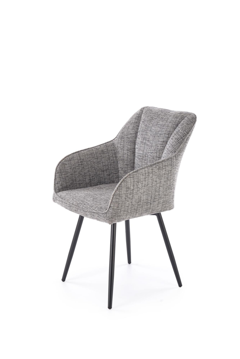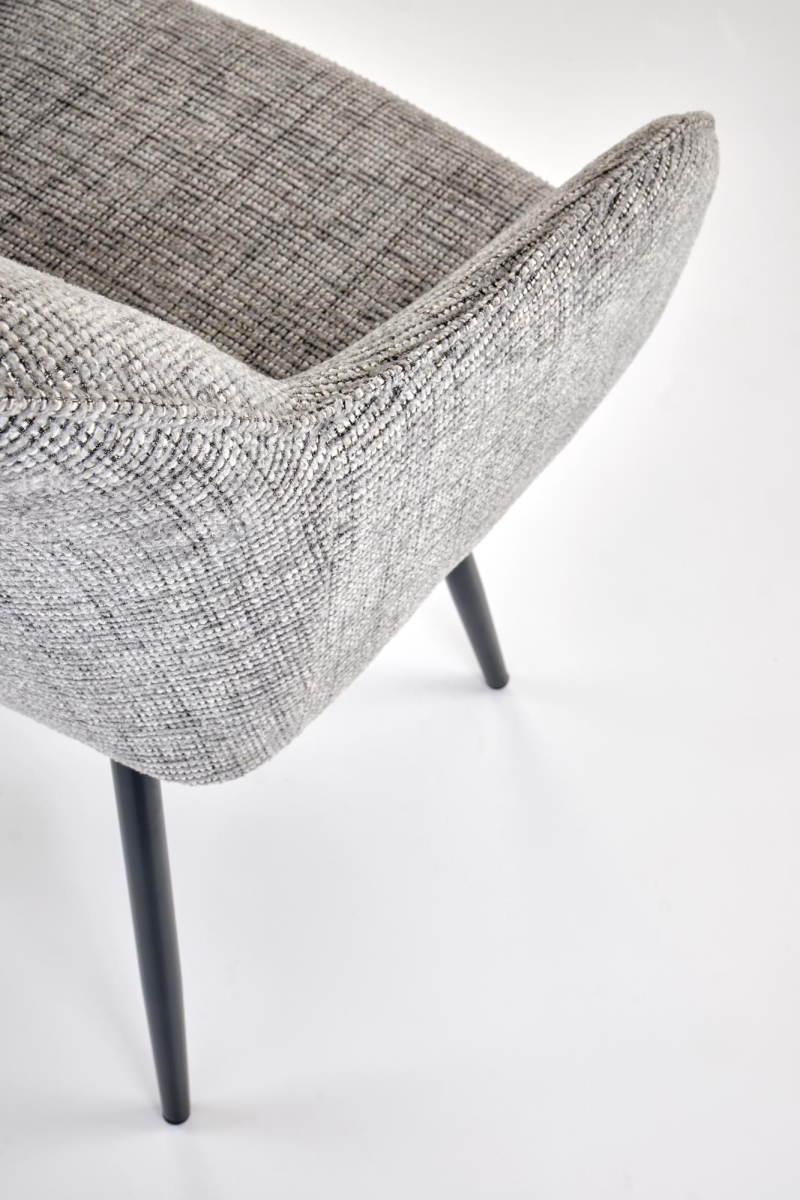 • Miękka, przyjemna w dotyku tkanina w eleganckim popielatym odcieniu zapewnia komfort siedzenia nawet podczas długich posiłków czy spotkań.