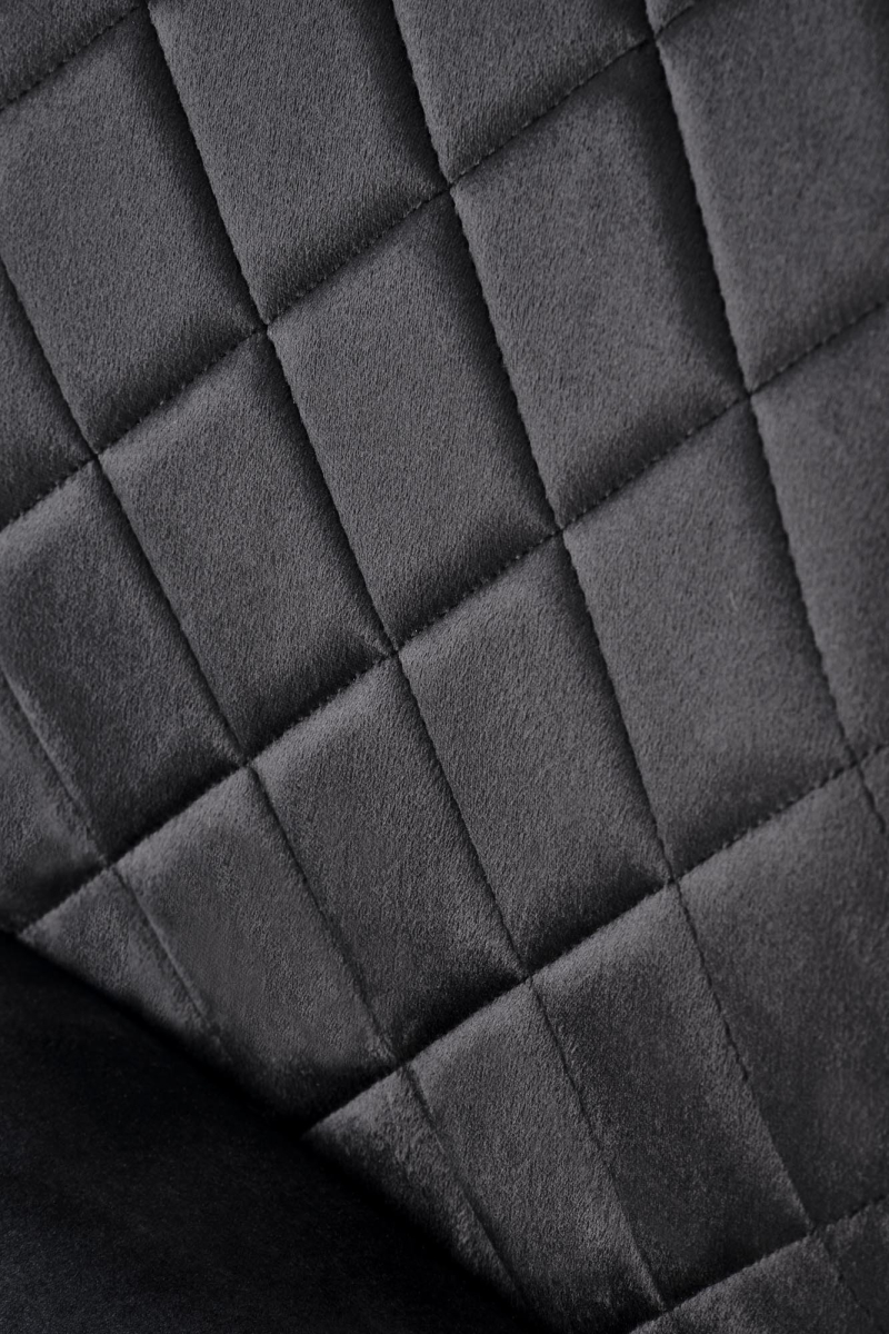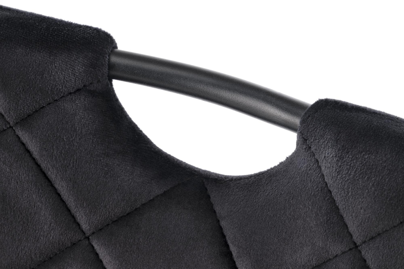 Wyjątkowe oparcie: Krzesło posiada unikalnie ukształtowane oparcie z lekkim zakrzywieniem, dodające elegancji. Pikowanie w romby na oparciu dodaje wizualnego zainteresowania i subtelny element teksturowy. -