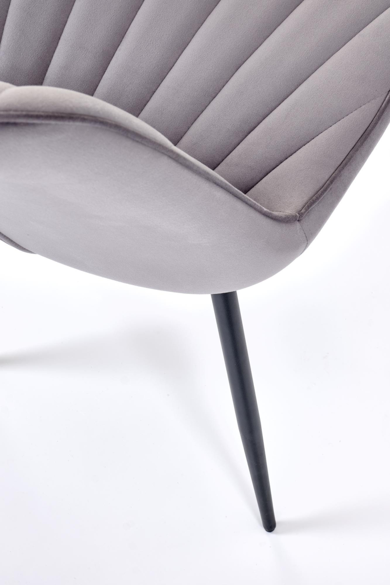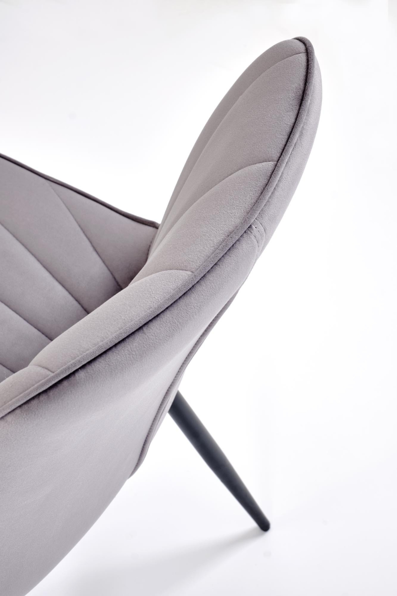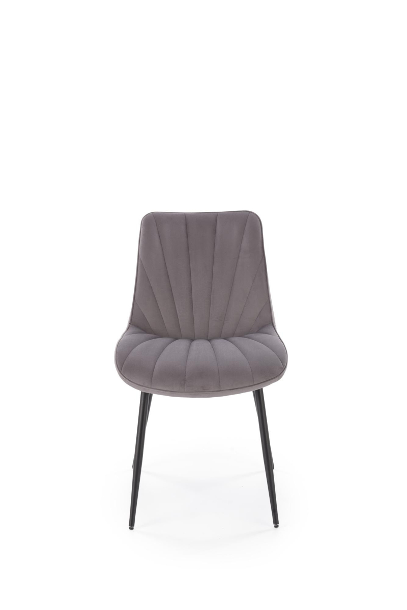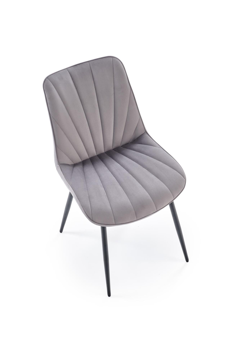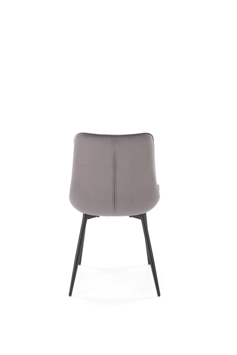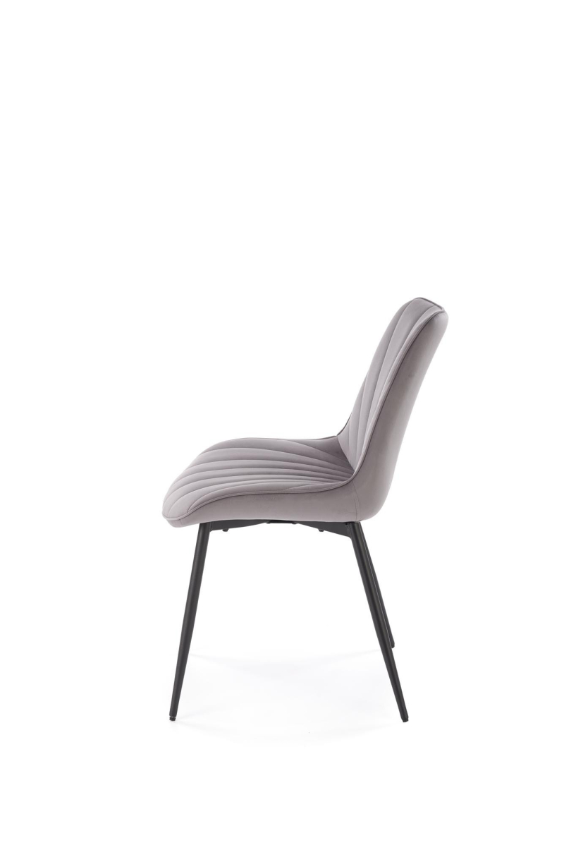 Krzesło K589 to stylowe i wygodne rozwiązanie, które łączy nowoczesny design z funkcjonalnością. Jego miękka, welurowa tapicerka, charakterystyczne przeszycia na oparciu oraz smukłe, metalowe nogi nadają mu elegancki i współczesny wygląd.