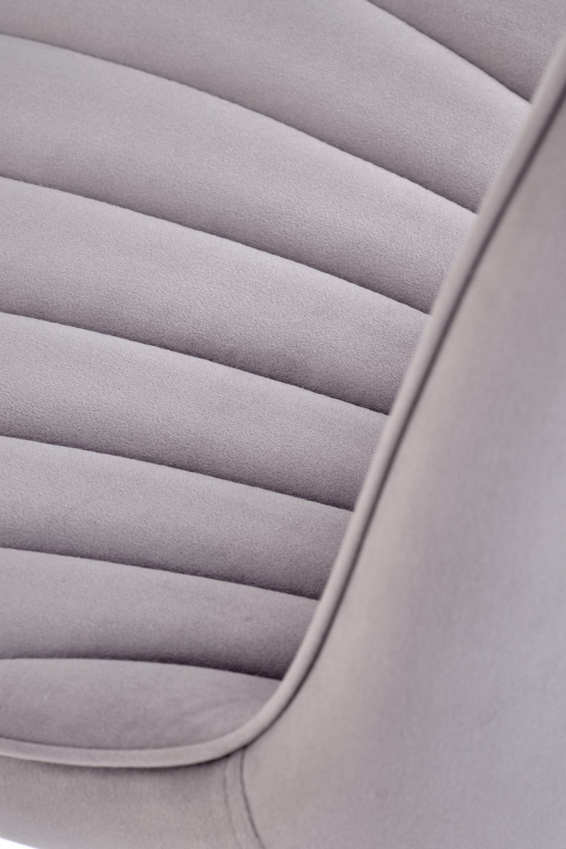 • Welurowa Tapicerka: Siedzisko i oparcie pokryte są miękką i aksamitną tkaniną typu velvet (Bluvel), która zapewnia komfort siedzenia i dodaje krzesłu nuty luksusu.