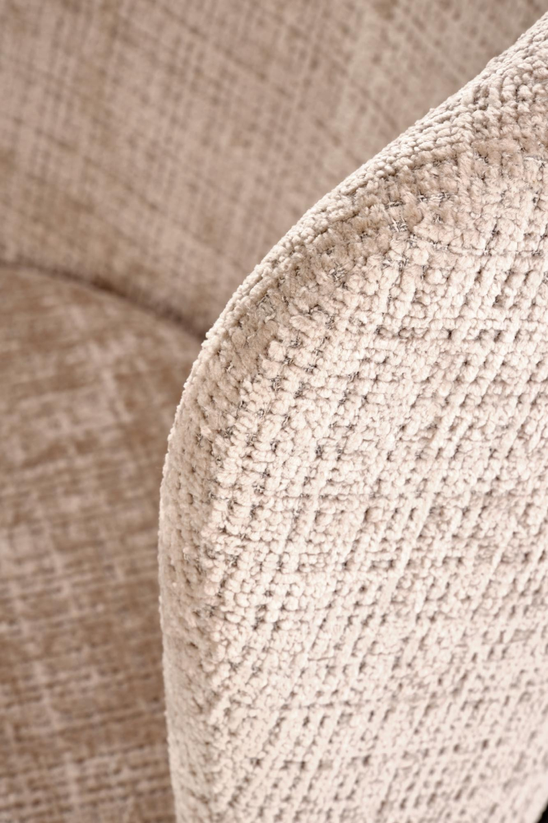 Zaokrąglone oparcie: Charakterystyczne, zaokrąglone oparcie obejmuje plecy, zapewniając wygodę siedzenia i tworząc przytulną atmosferę. -