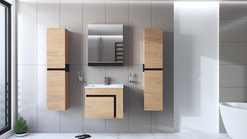 DUESA Szafka Pod Umywalkę: Nowoczesność i Funkcjonalność w Twojej Łazience Przedstawiamy DUESA Szafka Pod Umywalkę – idealne rozwiązanie dla tych, którzy cenią sobie połączenie nowoczesnego designu z wysoką funkcjonalnością w łazience. Ta elegancka szafka nie tylko estetycznie ukryje przyłącza wodne, ale także zaoferuje praktyczne miejsce do przechowywania. Szafka DUESA o wymiarach 60/45/47 cm doskonale sprawdzi się w łazienkach o różnym metrażu, tworząc spójną i harmonijną przestrzeń pod umywalką (umywalka nie jest elementem zestawu). Jej przemyślana konstrukcja zapewnia optymalne wykorzystanie dostępnej powierzchni. Wykonana z wysokiej jakości płyty meblowej laminowanej, szafka gwarantuje trwałość i odporność na warunki panujące w łazience, a także łatwość w utrzymaniu czystości. Kolorystyka dąb złoty / czarny to połączenie, które wnosi do wnętrza elegancję i nowoczesny charakter. Ciepły odcień dębu złotego, z widocznym usłojeniem, idealnie harmonizuje z głęboką czernią, tworząc stylowy kontrast i podkreślając współczesny design mebla. Funkcjonalność szafki podnosi zastosowanie prowadnic soft close. Dzięki nim szuflada otwiera się i zamyka płynnie oraz cicho, zapobiegając trzaskaniu i zwiększając komfort codziennego użytkowania. Szafka oferuje zarówno pojemną szufladę, idealną na większe akcesoria, jak i otwarte półki, które doskonale sprawdzą się do przechowywania często używanych przedmiotów lub dekoracji, nadając łazience indywidualny charakter. DUESA Szafka Pod Umywalkę to inwestycja w porządek, estetykę i komfort, która sprawi, że Twoja łazienka stanie się jeszcze bardziej funkcjonalna i stylowa. Dane Techniczne: -