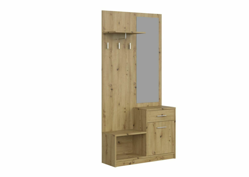 | Odkryj elegancję i funkcjonalność PERGO przedpokoju w kolorze dąb artisan, idealnego do każdego wnętrza. Jego minimalistyczny design doskonale sprawdzi się zarówno w nowoczesnych, jak i klasycznych aranżacjach. Dzięki przemyślanej konstrukcji przedpokój nie tylko ozdobi Twój dom, ale także zapewni niezbędne miejsce do przechowywania i organizacji codziennych akcesoriów. - Wymiary: 89,9 cm (szer.) / 30 cm (gł.) / 183,8 cm (wys.)