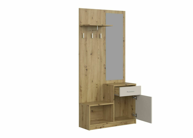 - Praktyczność: miejsce na odzież wierzchnią, parasole oraz inne drobiazgi, co pozwala utrzymać porządek w przedpokoju