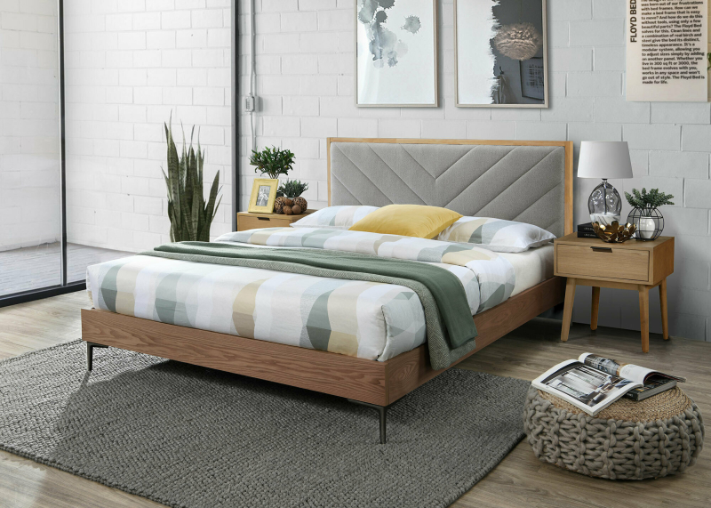 | Łóżko MARGARITA – Skandynawski Urok i Nowoczesna Elegancja w Twojej Sypialni Przedstawiamy łóżko MARGARITA, które idealnie łączy w sobie inspiracje stylem skandynawskim z nowoczesnym designem. To stylowe i funkcjonalne łóżko stanie się centralnym punktem każdej sypialni, wprowadzając do niej atmosferę ciepła i spokoju. Charakterystycznym elementem łóżka MARGARITA jest jego eleganckie wezgłowie, które wyróżnia się geometrycznym, jodełkowym przeszyciem, nadającym mu unikalny charakter. Wezgłowie tapicerowane jest wysokiej jakości tkaniną w uniwersalnym kolorze popielatym, zapewniającą komfortowe oparcie. Rama łóżka wykonana jest z solidnej płyty MDF pokrytej naturalną okleiną w odcieniu naturalnego drewna, co podkreśla jego autentyczność i ciepło. Całość wsparta jest na subtelnych nóżkach z malowanej proszkowo stali, które dodają konstrukcji lekkości i stabilności. Łóżko sprzedawane jest bez materaca. Parametry produktu: -