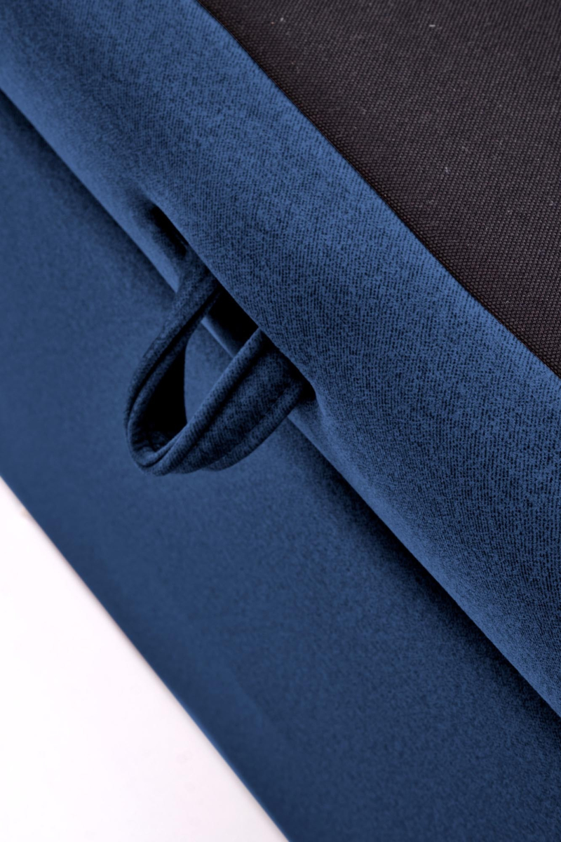 Łóżko Kontynentalne ASENTO z Pojemnikiem na Pościel – Nowoczesność i Komfort w Granatowym Wydaniu Przedstawiamy łóżko kontynentalne ASENTO, które łączy w sobie elegancję, niezwykły komfort i funkcjonalność, stanowiąc idealne rozwiązanie dla każdej sypialni. Jego nowoczesny design w połączeniu z praktycznymi udogodnieniami stworzy przestrzeń sprzyjającą relaksowi i wypoczynkowi. Design i Materiały: Łóżko ASENTO wyróżnia się głębokim, szlachetnym odcieniem granatowym (ELEMENT#13), uzyskanym dzięki tapicerce z wysokiej jakości tkaniny ELEMENT. Tkanina ta jest znana ze swojej wytrzymałości, przyjemnej tekstury i łatwości w utrzymaniu czystości, co zapewnia długie lata użytkowania bez utraty estetyki. Charakterystycznym elementem jest wysokie wezgłowie z pionowymi przeszyciami, które nadają mu nowoczesny i elegancki wygląd, a także stanowią wygodne oparcie podczas czytania czy relaksu. Minimalistyczna forma i czyste linie sprawiają, że łóżko ASENTO doskonale wkomponuje się zarówno w nowoczesne, jak i klasyczne wnętrza. Praktyczne Rozwiązania: Jako łóżko kontynentalne, ASENTO zostało wyposażone w obszerny pojemnik na pościel, dostępny od góry. To inteligentne rozwiązanie pozwala na optymalne wykorzystanie przestrzeni w sypialni, zapewniając dyskretne miejsce do przechowywania pościeli, koców, sezonowej odzieży czy innych przedmiotów, pomagając w utrzymaniu idealnego porządku. Wymiary i Specyfikacja: -