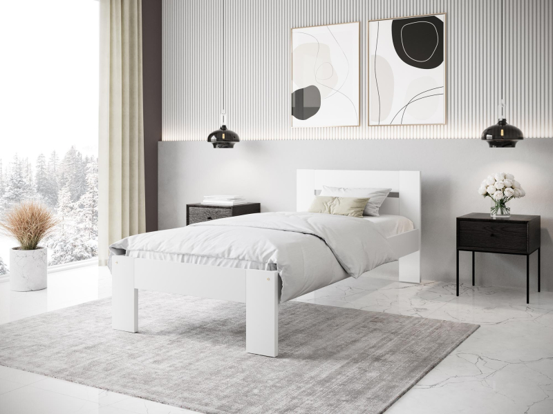 | Łóżko MATILDA – Klasyczna Elegancja i Naturalne Piękno w Twojej Sypialni Odkryj prostotę i naturalny urok z łóżkiem MATILDA, które wniesie do Twojej sypialni świeżość i ponadczasową estetykę. Wykonane z solidnego drewna bukowego, to łóżko jest gwarancją trwałości i stabilności na lata, a jego minimalistyczny design doskonale wpasuje się w różnorodne aranżacje wnętrz, idealne do pokoju młodzieżowego, gościnnego, czy mniejszej sypialni. Design i Materiały: Łóżko MATILDA zostało wykonane z wysokiej jakości drewna litego bukowego w klasycznym, białym kolorze, co zapewnia mu wyjątkową wytrzymałość i stabilność. Drewno bukowe jest cenione za swoją twardość i odporność na uszkodzenia, co sprawia, że łóżko będzie służyć przez długie lata. Białe wykończenie nadaje meblowi lekkości i uniwersalności, pozwalając na łatwe dopasowanie do każdego wystroju sypialni. Proste, poziome listwy wezgłowia dodają całości subtelnego charakteru, idealnie komponując się z tradycyjnymi, jak i nowoczesnymi wnętrzami. Wymiary i Specyfikacja: -
