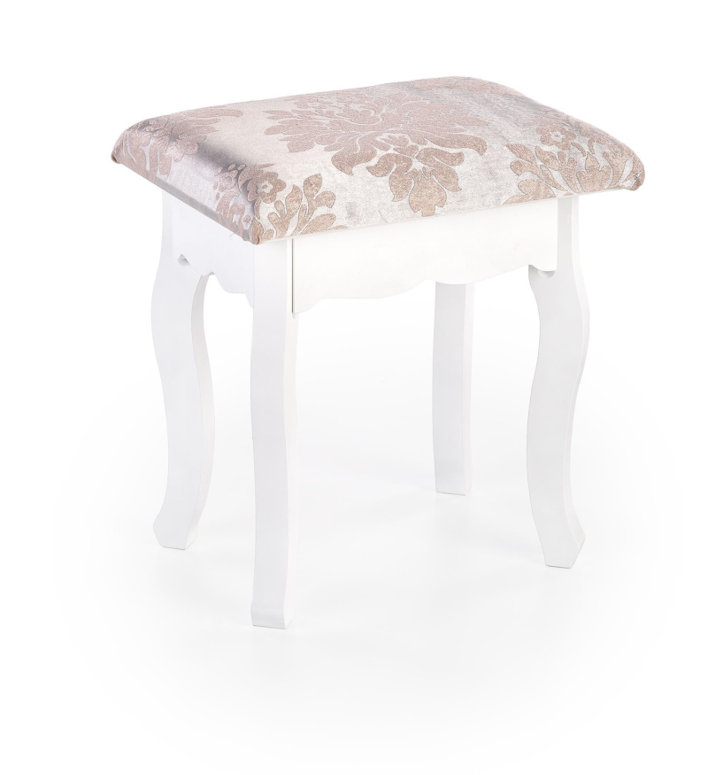 Wygodne siedzisko: Dołączone do zestawu siedzisko z tapicerowanym blatem (wzór kwiatowy widoczny na zdjęciach) zapewnia komfort podczas użytkowania konsolki. -