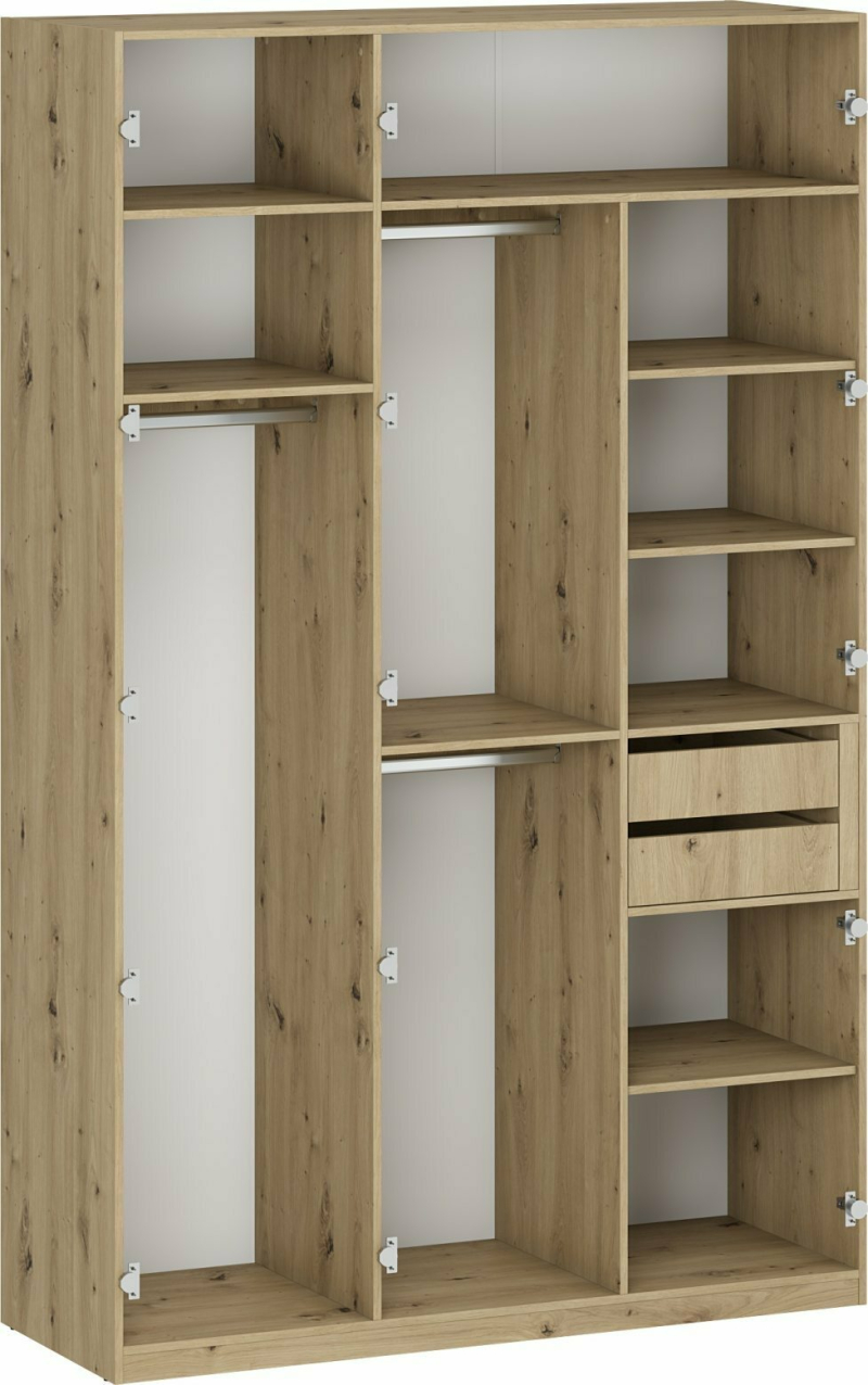 - Zawiasy: Ciche domykanie: Drzwi szaf wyposażone są w zawiasy z systemem cichego domykania, co zapewnia komfortowe i bezgłośne użytkowanie.