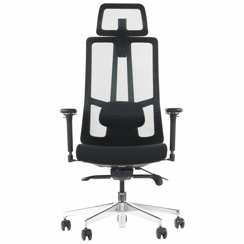 Oparcie tapicerowane wytrzymałą tkaniną siatkową (mesh) zapewnia optymalną cyrkulację powietrza, zapobiegając przegrzaniu. Funkcja regulacji wysokości oparcia (zakres 6 cm pozwala precyzyjnie ustawić punkty podparcia.